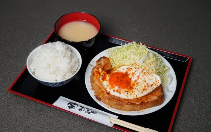 まるみや(精肉店)に併設する食堂で新鮮な料理を味わっていただけます。